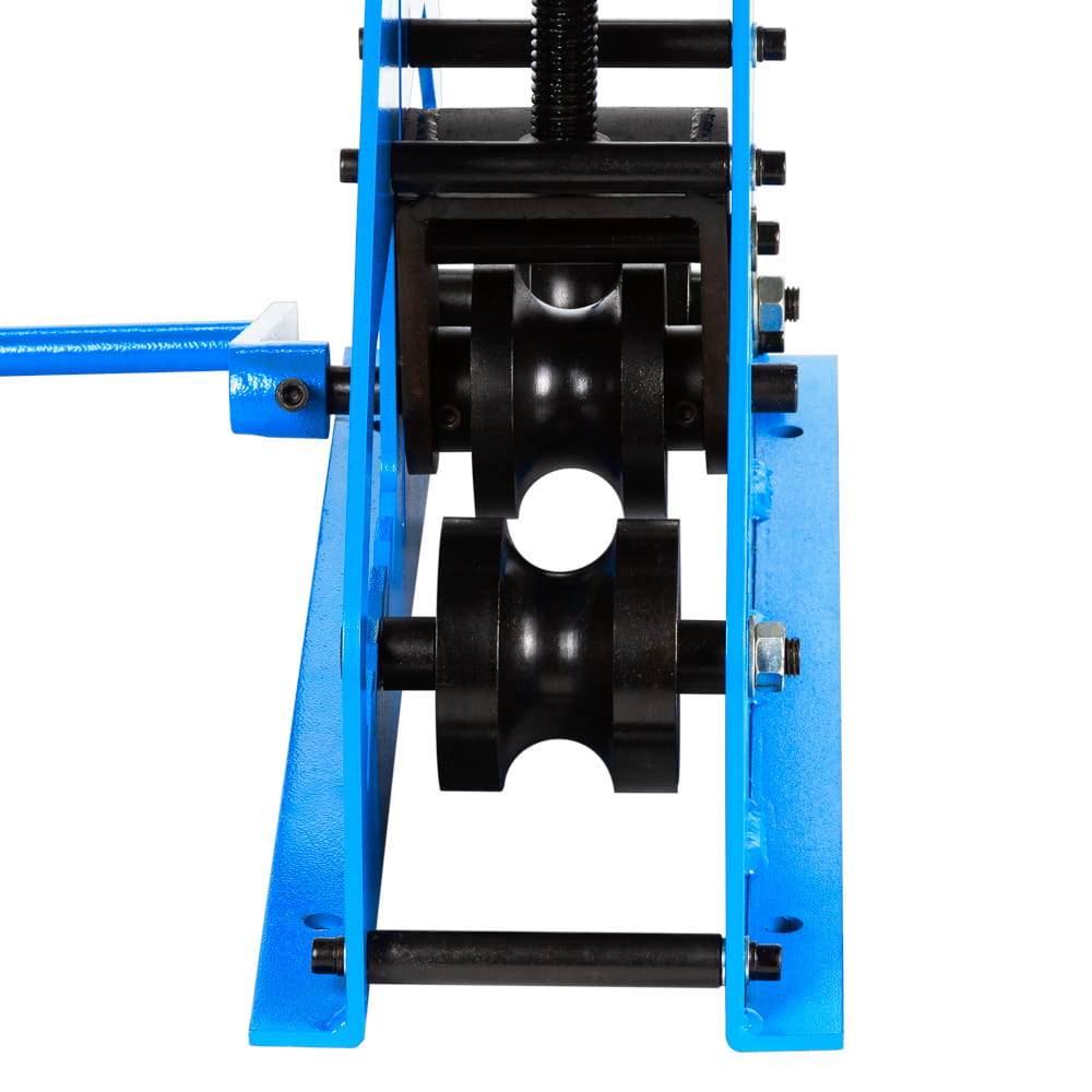 Giętarka, zaginarka, walcarka – UW60E - do rur, profili kwadratowych i prostokątnych wraz z zestawem kamieni 1 i ½”. Ta profesjonalna przenośna giętarka do rur pozwala na bardzo precyzyjne ręczne zaginanie rur. Bardzo przydatna przy produkcji niestandardowych elementów rurowych. W opakowaniu 1 zestaw rolek do gięcia rur. Do gięcia profili wymagany jest inny zestaw rolek (brak w zestawie). Rolki są łatwe do wymiany.