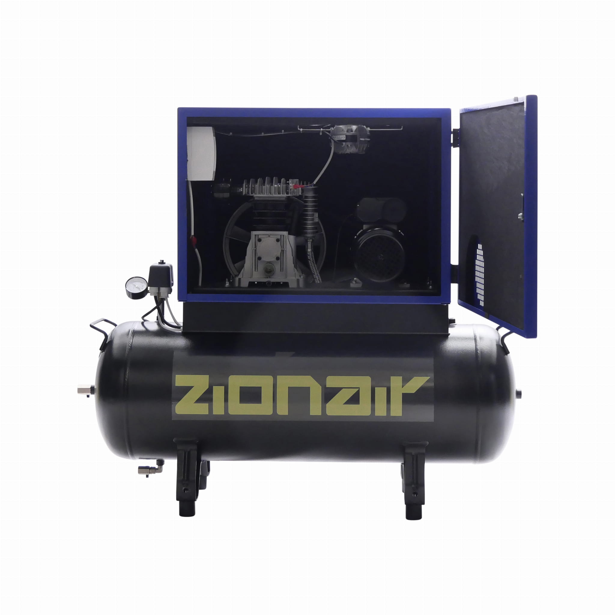 Kompresor wyciszony CP15S100 1,5 kW, 230 V, 10 bar, zbiornik 100 l. Kompresor / kompresor wyciszony / cichy kompresor. Ten model wyciszonego kompresora ZionAir jest produkowany we Włoszech zgodnie europejskimi normami jakości i jest wyposażony w pompę B2800B-Abac. Dzięki temu kompresor jest energooszczędny oraz łatwy w użyciu i utrzymaniu, a także zapewnia maksymalną wydajność przy minimalnym poziomie hałasu. Kompresor ma tryb startu swobodnego. Oznacza to, że kompresor swobodnie rozpoczyna pracę z ograniczeniem ciśnienia do 2 barów dla uniknięcia wysokiego skoku obciążenia przy rozruchu. Oprócz tego kompresor jest wyposażony w system „wentylacja na żądanie”. Wykorzystywane są w nim wbudowane wentylatory, które się automatycznie włączają przy wzroście temperatury kompresora.