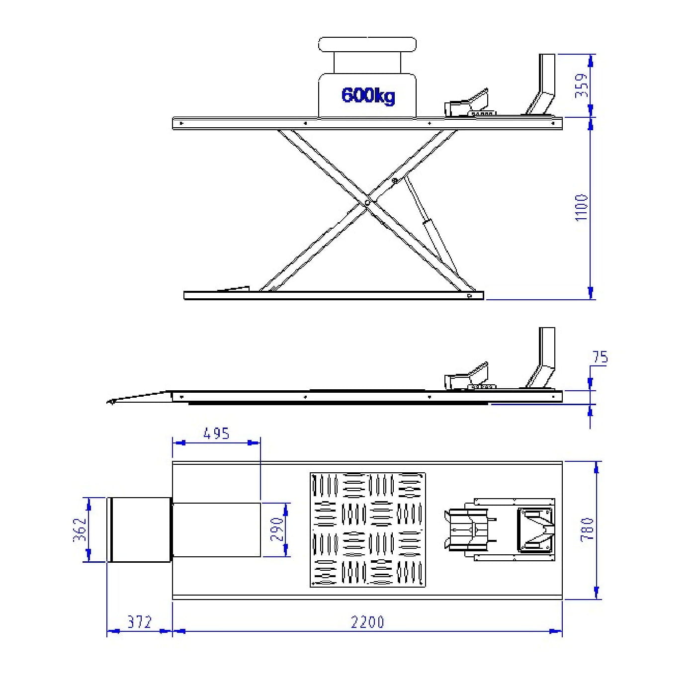 Podnośnik motocyklowy krzyżakowy elektryczny 600 kg – MLP60KE to przemyślana konstrukcja przeznaczona dla profesjonalnych serwisów ciężkich motocykli. Cechy urządzenia to: