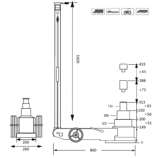 Podnośnik pneumatyczno hydrauliczny 50/30/15 ton – FJ50AHT
