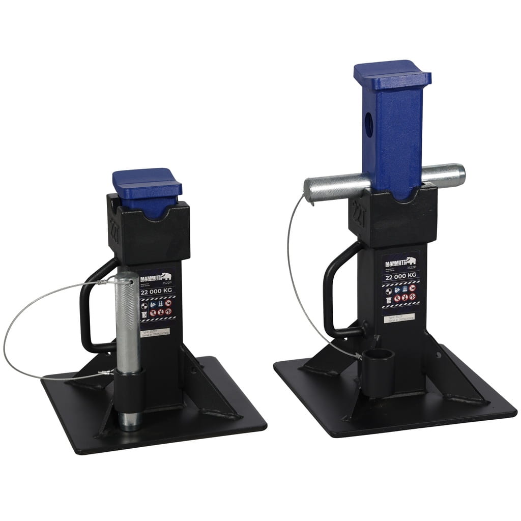 Ten zestaw 22-tonowych podpór Mammuth został zaprojektowany do podtrzymywania ciężkich pojazdów, takich jak ciężarówki i maszyny rolnicze. Ich duża nośność sprawia, że nadają się do intensywnego użytkowania w profesjonalnych środowiskach, takich jak warsztaty, garaże i sektor rolniczy.