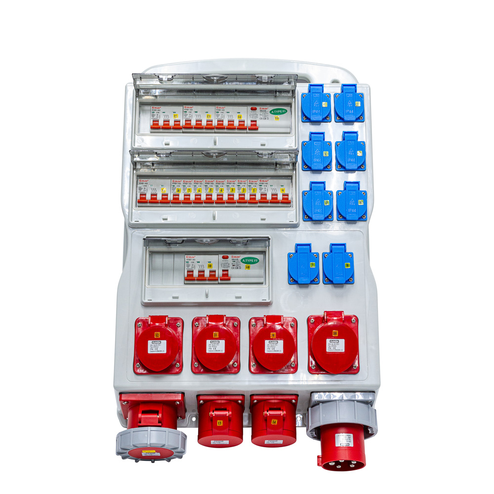 Wyjście: 3x gniazdo CEE 16A: 3x gniazdo CEE 32A: 1x gniazdo CEE 63A: 8x gniazdo standardowe (DIN49440) 16A |