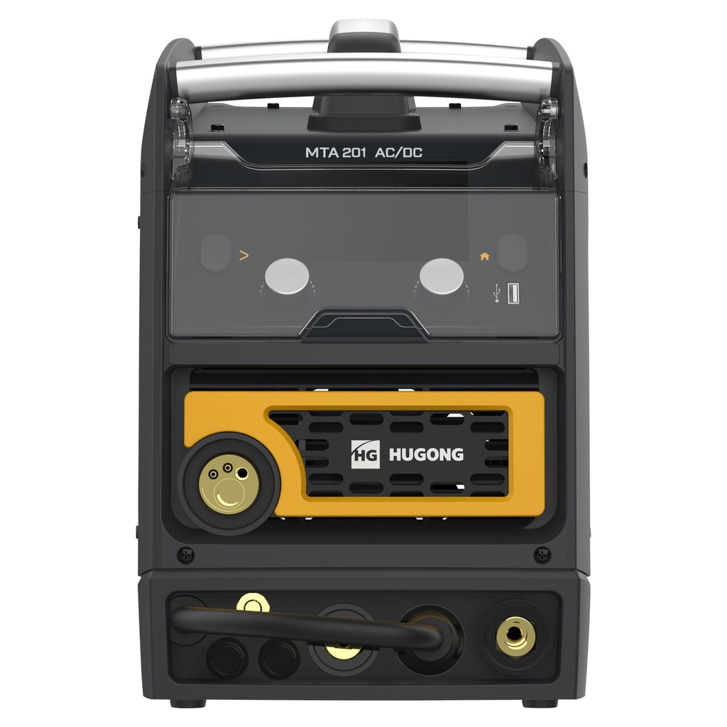 Hugong MTA201ACDC to zaawansowana spawarka 4-w-1 z serii NOVI, łącząca MIG/MAG, AC/DC TIG (HF) i MMA w jednym, przenośnym urządzeniu. Dzięki technologii Cortex M4 i cyfrowej obróbce fal, maszyna zapewnia wyjątkowo precyzyjne wyniki spawania stali, stali nierdzewnej, aluminium oraz CuSi. Z funkcją sterowania synergicznego, rozbudowanym menu TIG Pulse i podajnikiem MIG z podwójnymi rolkami, urządzenie zostało zaprojektowane dla profesjonalistów ceniących wszechstronność i pełną kontrolę nad procesem spawania.Wyświetlacz HDVision z przejrzystym ekranem LCD ułatwia ustawienia, a solidna, przemysłowa obudowa i wbudowane miejsce do przechowywania kabli sprawiają, że spawarka nadaje się do codziennego użytkowania w warsztacie.