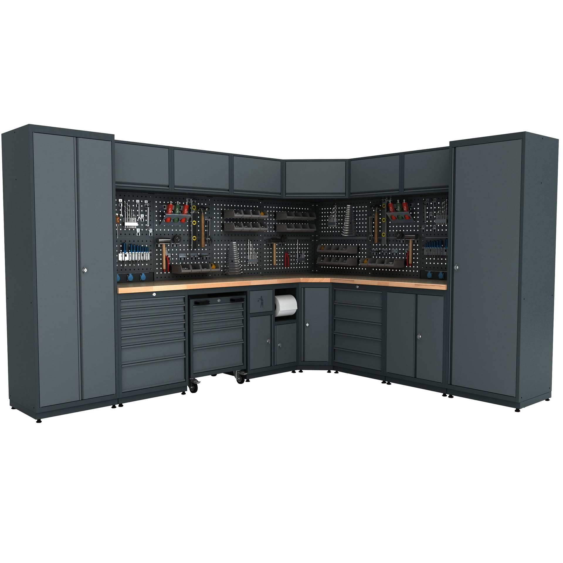 Stół warsztatowy EXPERT – BGMOD4 Modularne wyposażenie warsztatowe / kompletne miejsce pracy / pełna konfiguracja warsztatowa moduł 4. Z wyposażeniem warsztatowym Expert marki BULLRAM, każdy warsztat można urządzić według własnych preferencji. Wyposażenie zapewnia profesjonalny wygląd, oferuje idealną przestrzeń do różnych prac oraz jest wyposażone w osiem gniazd 230V i wystarczającą ilość miejsca do przechowywania narzędzi. Wszystkie elementy z serii Expert są dostępne osobno, co pozwala na stworzenie własnej aranżacji warsztatu, a ten moduł jest jej przykładem. Moduł wyposażenia warsztatowego BGMOD4 Expert składa się z:
