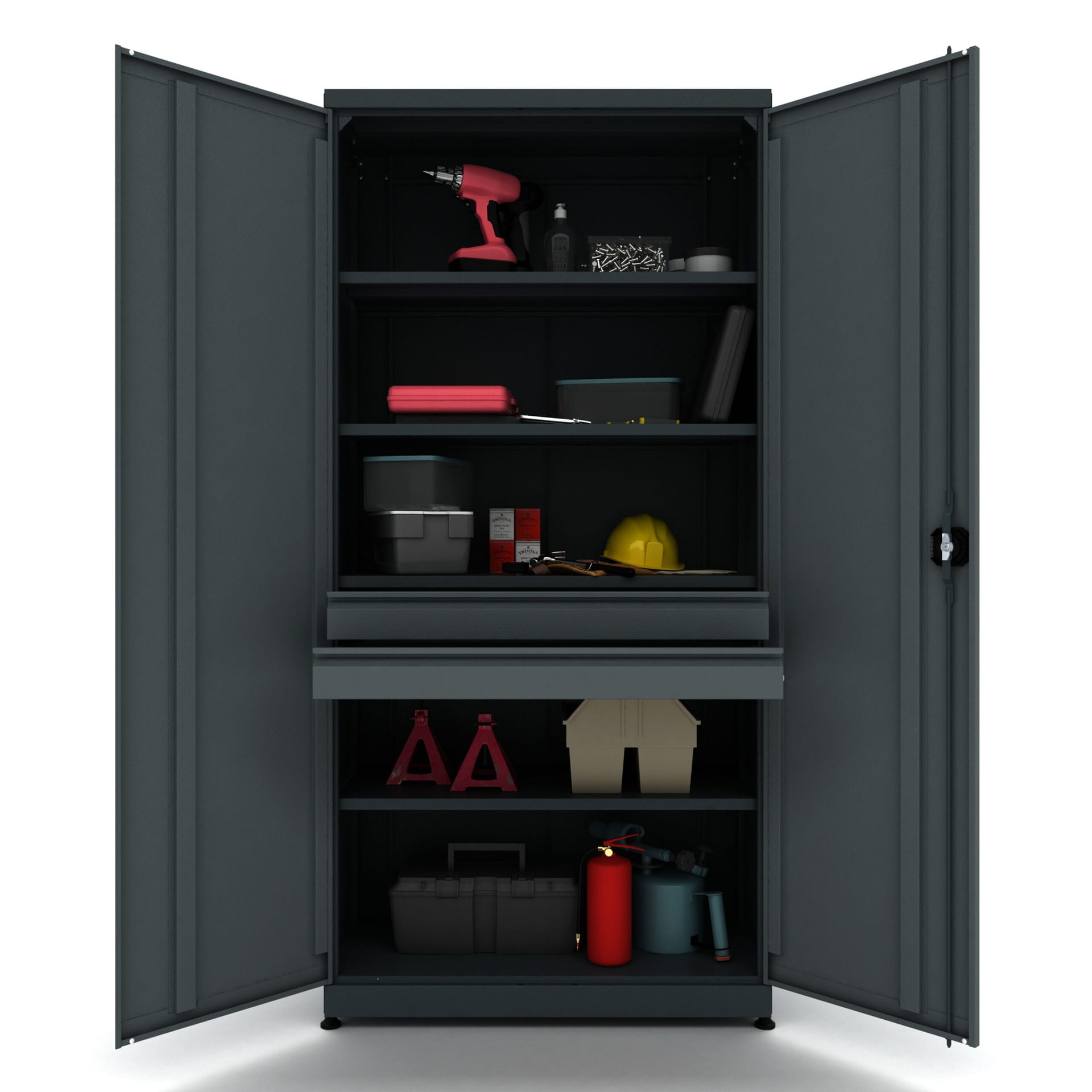 Szafa metalowa 2-drzwiowa BG95D2 z 2 szufladami Metalowa szafa na narzędzia od BULLRAM jest idealna do garaży, warsztatów i innych miejsc wymagających zorganizowanego przechowywania narzędzi i in. materiałów. Łączy funkcjonalność i trwałość, co czyni ją niezbędnym elementem systemu magazynowego.