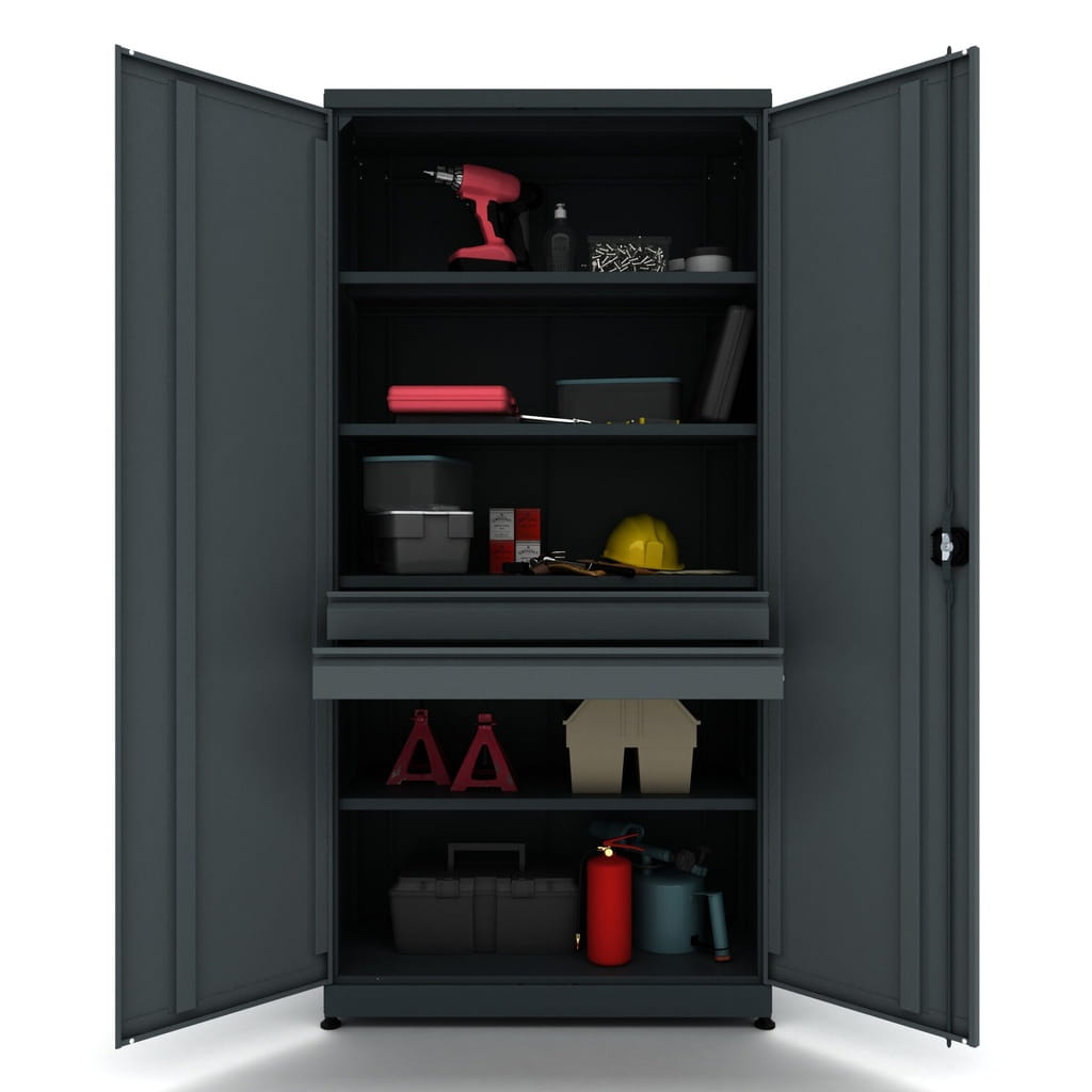 Szafa narzędziowa metalowa 2 drzwiowa - BG95D2L, w tym 2 szuflady. Metalowa szafa narzędziowa BULLRAM jest idealna do garaży, warsztatów i innych przestrzeni wymagających zorganizowanego przechowywania. Łączy funkcjonalność z trwałością, co czyni ją niezbędnym elementem systemu przechowywania.